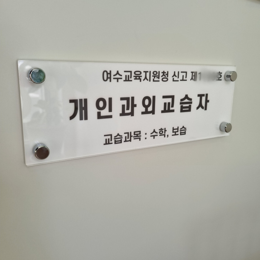 개인과외 교습자 학원법 규정 아크릴 자석 uv인쇄 안내판 문패 현판 표지만 학원 교습소